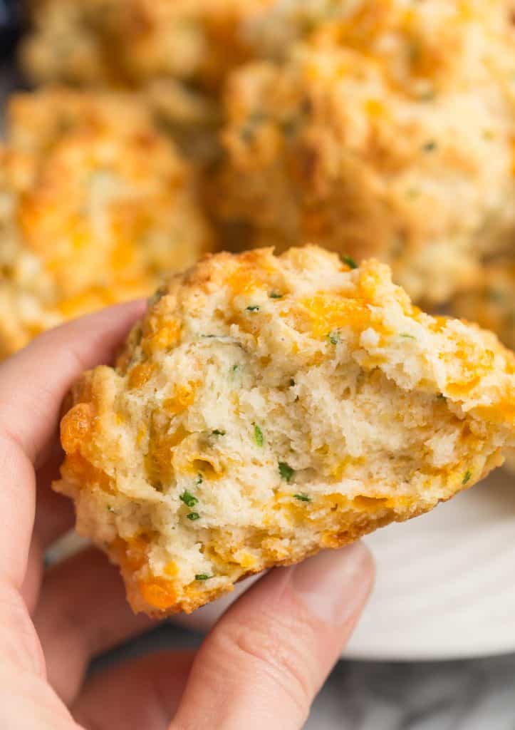 Fresh out of the oven these Cheesy Chive Gluten Free Biscuits will rival any restaurant quality biscuit (looking at you Red Lobster)! Made all in one bowl in about 20 minutes - there's very little to it! Simply mix, drop and bake for about 15 minutes until your biscuits are soft on the inside with a golden crust formed on the outside!