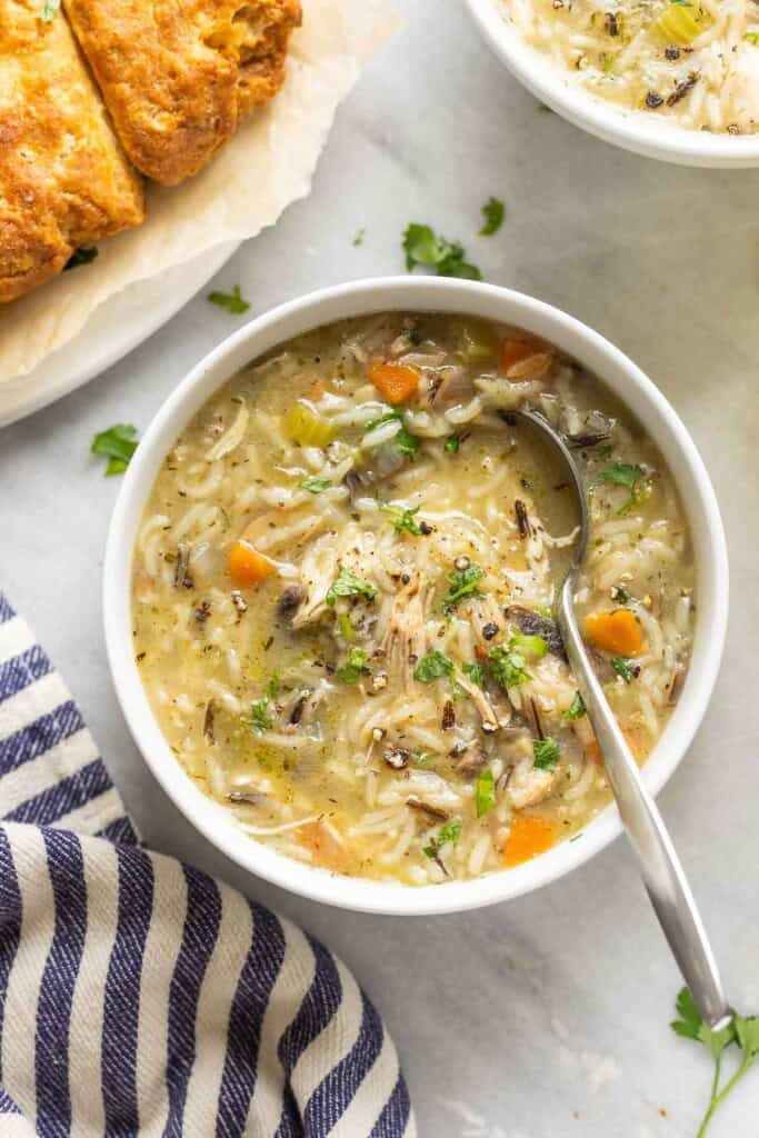 Made with sautéd veggies, a wild rice blend and chicken cooked in a silky + savory dairy-free broth. It’s a simple, nourishing dish that’s especially great for cold weather!